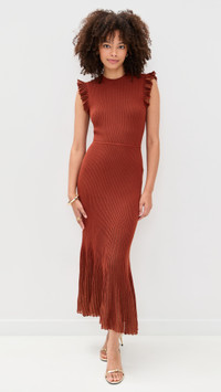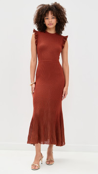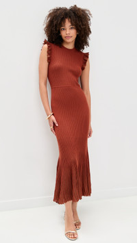 - Fabric: Mid-weight metallic knit with stretch - Midi length - Crew neck - Short flutter sleeves - Pullover design, no closure - Shell: 53% viscose/47% polyester - Unlined - Dry clean - Imported, China Style #ULLAJ23399 Size & Fit Model measurements: Size P: Alexis (5'8") usually wears size P-S Measurements from size P Length: 48.75in / 124.0cm, from shoulder