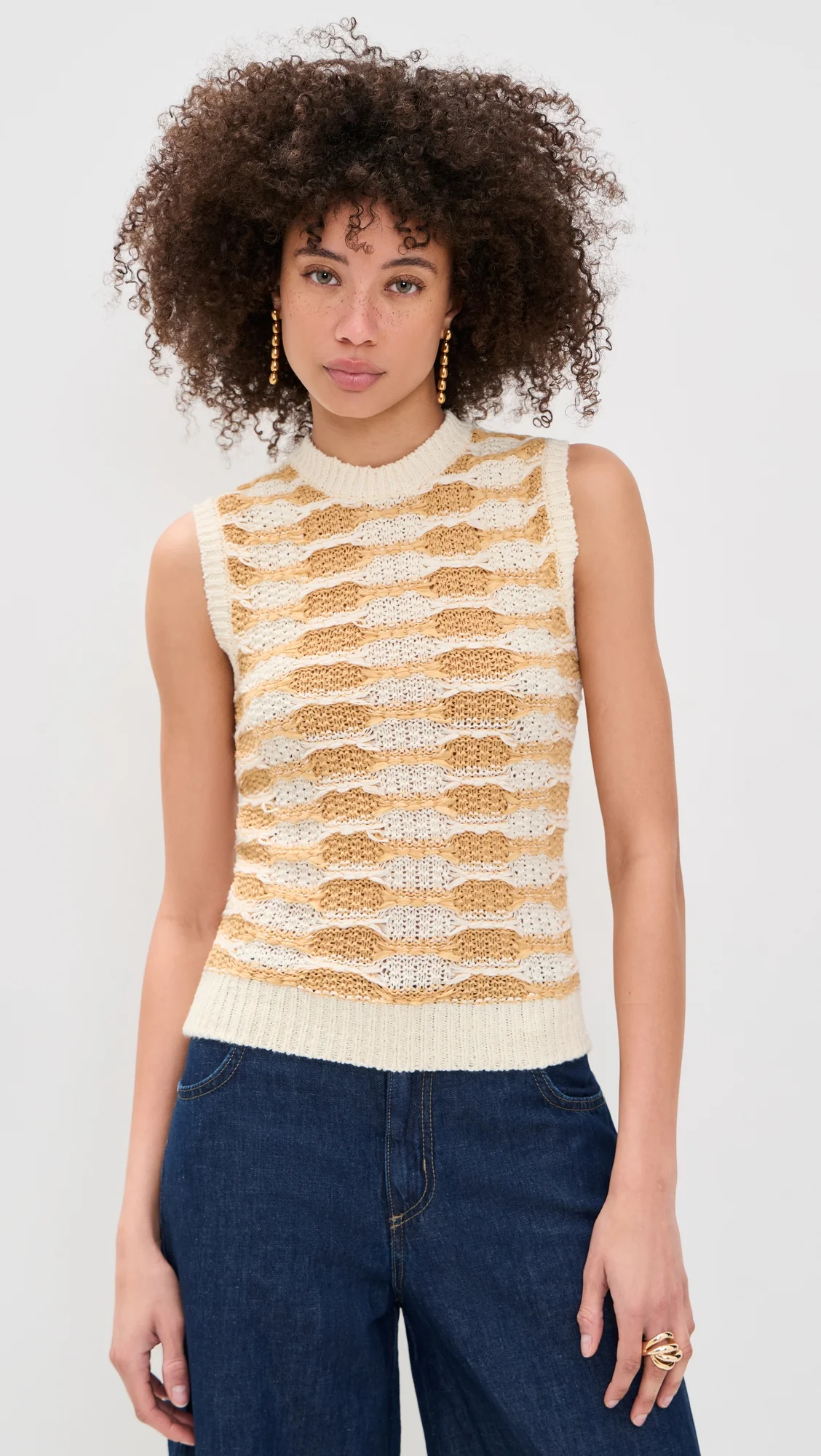 - Fabric: Lightweight stretch knit - Textured pattern - Crew neck - Sleeveless - Shell: 65% acrylic/35% nylon - Dry clean - Imported, China Style #ULLAJ23491 Size & Fit Model measurements: Size P: Drew (5'8") usually wears size XS-S Measurements from size P Length: 20.5in / 52.0cm, from shoulder
