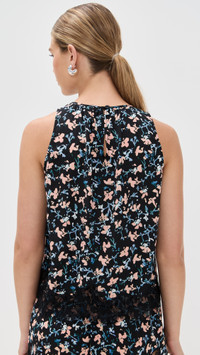 - Fabric: Lightweight, non-stretch silk chiffon - Floral print and lace trim - Crew neck - Sleeveless - Button keyhole at back - Shell: 100% silk - Trim: 100% polyamide - Dry clean - Imported, China Style #ULLAJ23148