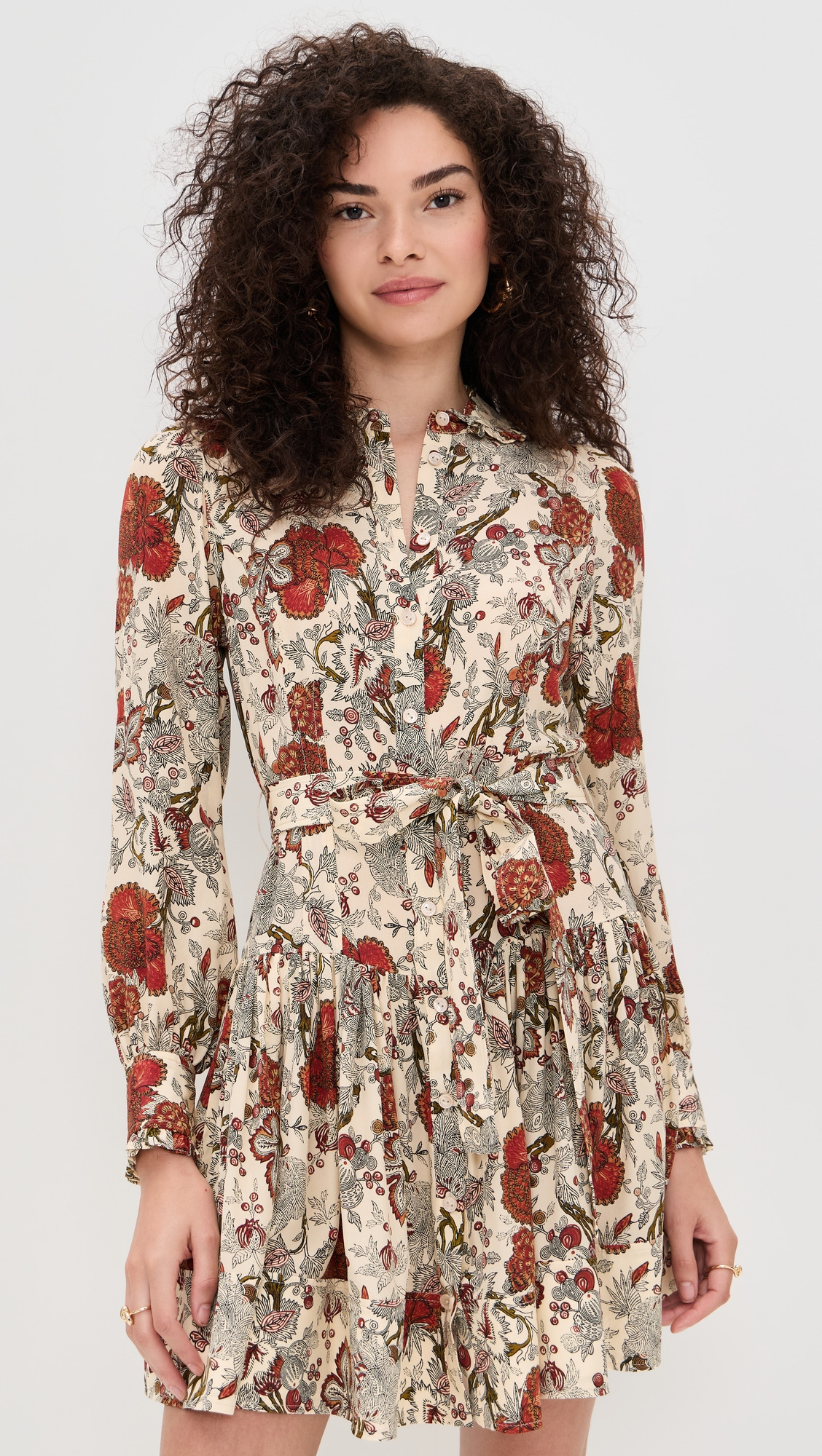 - Fabric: Lightweight, non-stretch silk crepe - Pleated detailing at neckline - Dropped waist - Floral print - Mini length - Collared neck - Long sleeves with button cuffs - Button placket and tie self-belt - Shell: 100% silk - Unlined - Dry clean - Imported, China Style #ULLAJ23296 Size & Fit Customers say: Runs small; please size up. Model measurements: Size 0: Brianna (5'9") usually wears size 0 Measurements from size 0 Length: 32.75in / 83.0cm, from shoulder