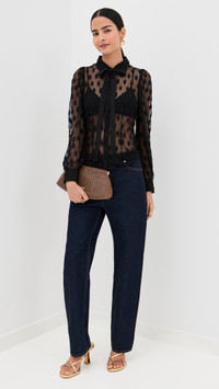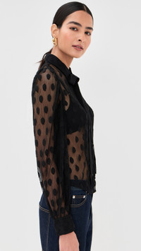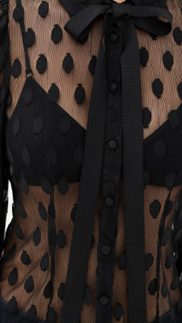 - Fabric: Lightweight, low-stretch mesh knit - Polka dot pattern - Button cuffs - Collared neck - Long puff sleeves - Button placket - Tie at neckline - Semi-sheer - Shell: 60% polyamide/40% cotton - Hand wash - Imported, India Style #ULLAJ23254