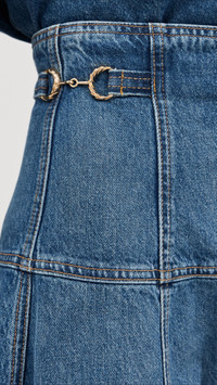 - Fabric: Mid-weight, non-stretch denim - Gold-tone buckle detailing - Paneled design - Zip at back - Shell: 100% cotton - Unlined - Wash cold - Made in the USA Style #ULLAJ23005