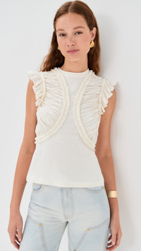 - Fabric: Lightweight jersey - Ruched panels and ruffled trim - Crew neck - Sleeveless - Shell: 100% cotton - Wash warm - Imported, Turkey Style #ULLAJ23150 Size & Fit Model measurements: Size P: Maia (5'10") usually wears size P Measurements from size P Length: 22in / 56.0cm, from shoulder