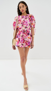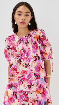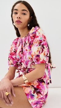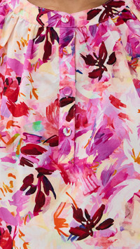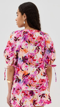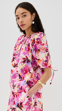 - Fabric: Lightweight, non-stretch poplin - Floral print - Crew neck - Short puff sleeves with tie cuffs - Partial button placket - Shell: 100% cotton - Wash cold - Imported, China Style #ULLAJ23028