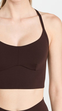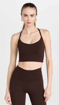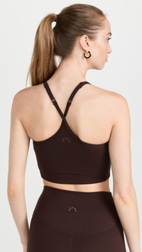 - Fabric: Lightweight, activewear jersey - Scoop neckline and adjustable crisscross straps - Light support for activities like walking and yoga - Shell: 75% recycled polyester/25% elastane - Lined - Lining: 86% polyamide/14% elastane - Wash cold - Imported, China Style #VARLE30261 Size & Fit Model measurements: Size S: BB (5'10.5") usually wears size XS-S Measurements from size S Length: 13.5in / 34.0cm, from shoulder