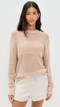- Fabric: Lightweight open knit with stretch - Ribbed trim - Crew neck - Shell: 100% cotton - Hand wash - Imported, China - Long sleeves with dropped shoulders Style #VARLE30550 Size & Fit Customers say: Runs large; please size down. Model measurements: Size XS: Brittany (5'9.5") usually wears size XS Measurements from size XS Length: 24.75in / 63.0cm, from shoulder