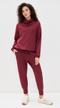 - Fabric: Mid-weight, super-stretch jersey - On-seam side pockets and welt back pockets - Covered elastic waist with interior drawstring - Shell: 81% viscose/15% polyester/4% elastane - Wash cold - Imported, Cambodia Style #VARLE30542 Size & Fit Customers say: Runs small; please size up. Model measurements: Size S: Brianna (5'9") usually wears size XS Measurements from size XS Rise: 11.75in / 30cm Inseam: 25in / 63.5cm
