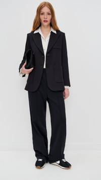 - Fabric: Mid-weight, non-stretch suiting - Padded shoulders - Collared neck - Long sleeves with button cuffs - Button placket - Patch front pockets - Shell: 65% viscose/15% acrylic/12% polyester/8% wool - Lined - Lining: 100% viscose - Dry clean - Imported, Vietnam Style #VBEAR32974 Size & Fit Model measurements: Size 2: Haley (5'9.5") usually wears size 2 Measurements from size 2 Length: 29.25in / 74.0cm, from shoulder