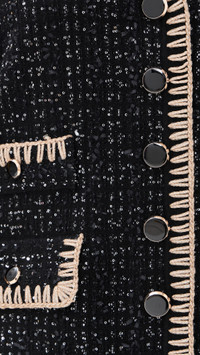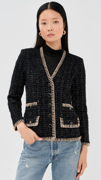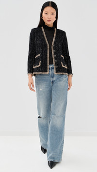 - Fabric: Mid-weight stretch knit - Enamel logo crest buttons - Sequined threading - Optional shoulder pads - Faux welt front pockets - Constrast stitching at edges - V neck - Long sleeves - Button placket - Flap front pockets - Shell: 52% viscose/40% polyester/7% polyamide/1% metallic - Unlined - Dry clean - Imported, China Style #VBEAR32943 Size & Fit Model measurements: Size S: Somin (5'10.5") usually wears size XS-S Measurements from size XS Length: 23.5in / 60.0cm, from shoulder