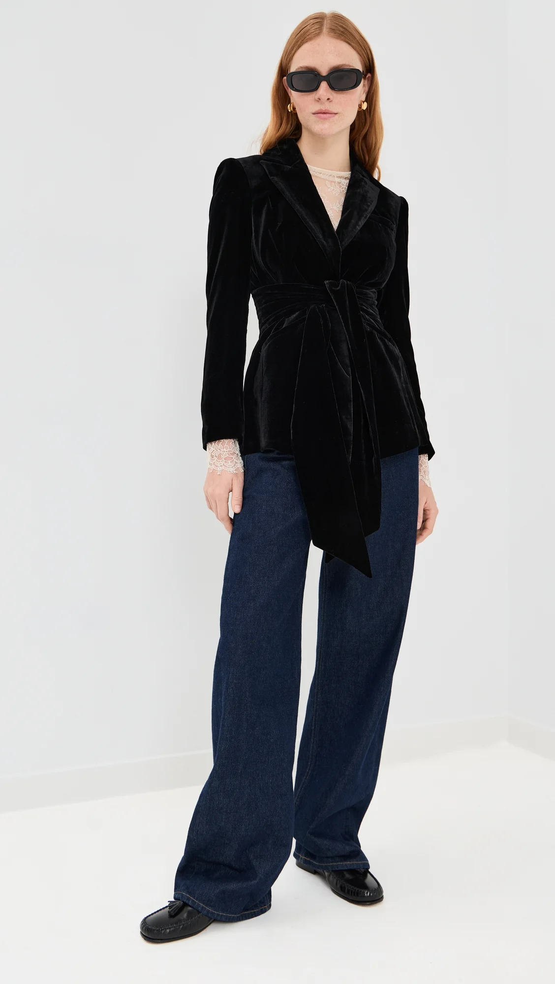 - Fabric: Mid-weight, non-stretch velvet - Padded shoulders - Collared neck - Long sleeves with button cuffs - Single-button placket - Tie self-belt - Welt front pockets - Shell: 75% rayon/25% polyamide - Lined - Lining: 96% polyester/4% elastane - Dry clean - Imported, China Style #VBEAR32948