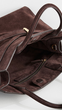 - Suede - Adjustable belted strap - Gold-tone hardware - Open top with magnetic closure - Multiple interior pockets - Optional, adjustable strap - Lining: Leather - Weight: 23oz / 0.65kg - Imported, Vietnam Style #VBEAR33011 Size & Fit Length: 16.5in / 42cm Height: 10.25in / 26cm Depth: 6in / 15cm Strap drop: 22in / 56cm Handle drop: 4.25in / 11cm