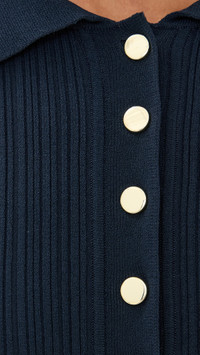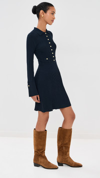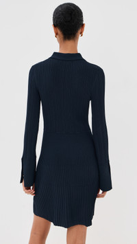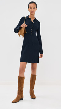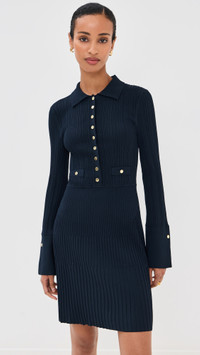 - Fabric: Mid-weight, super-stretch ribbed knit - Gold-tone buttons - Mini length - Collared neck - Long sleeves with button cuffs - Partial button placket - Faux front pockets - Shell: 60% viscose/22% nylon/14% polyester/4% elastane - Unlined - Dry clean - Imported, China Style #VBEAR32961 Size & Fit Customers say: Runs large; please size down. Model measurements: Size XS: Mical (5'10") usually wears size XS Measurements from size XS Length: 34.75in / 88.0cm, from shoulder to front hem