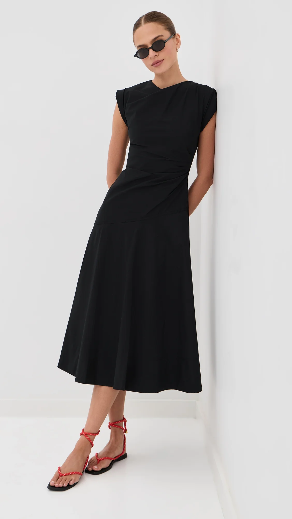 - Fabric: Lightweight stretch poplin - Gathering at waist - Midi length - Mock neck - Sleeveless - Hook-and-eye and hidden zip at back - Shell: 97% cotton/3% elastane - Lined - Lining: 100% cotton - Wash cold - Imported, Vietnam Style #VBEAR33214 Size & Fit Model measurements: Size 0: Margaret (5'11") usually wears size 0 Measurements from size 2 Length: 49.5in / 126.0cm, from shoulder