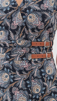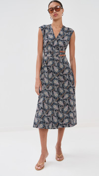 - Fabric: Mid-weight stretch poplin - Faux wrap silhouette and self-belt at side - Floral print - Partially elasticized waist - Midi length - Surplice neckline - Sleeveless - Hook-and-eye and hidden zip at side - Shell: 97% cotton/3% elastane - Unlined - Dry clean - Imported, China Style #VBEAR32896