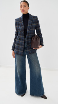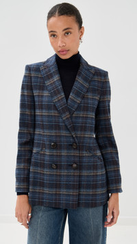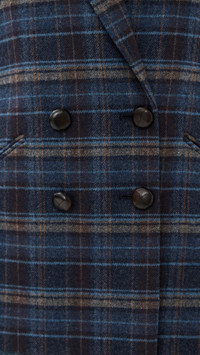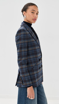 - Fabric: Mid-weight, non-stretch wool suiting - Padded shoulders - Plaid pattern - Double back vent - Collared neck - Long sleeves with button cuffs - Double-breasted button placket - Welt front pockets - Shell: 58% wool/30% polyester/9% polyamide/3% other fibers - Lined - Lining: 100% cupro - Dry clean - Imported, Vietnam Style #VBEAR32980