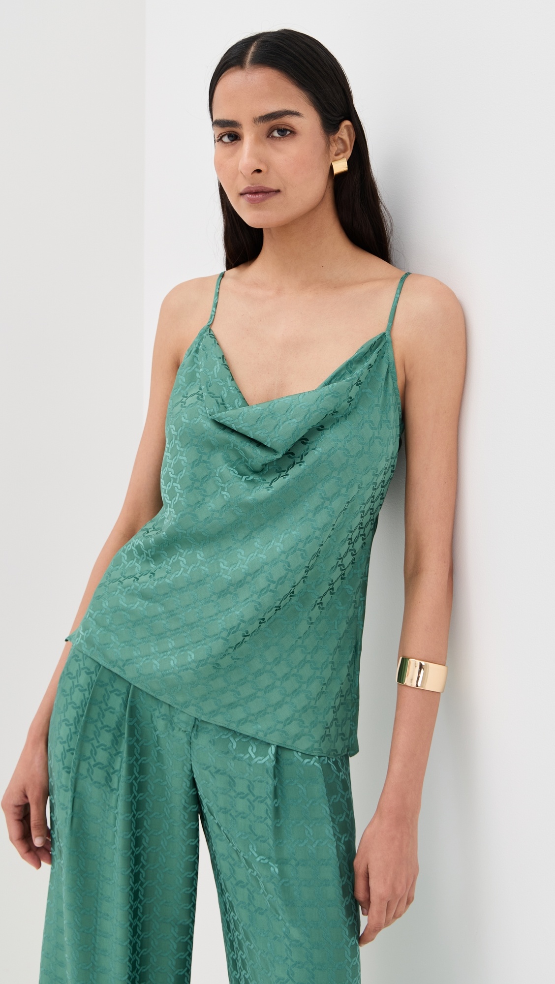 - Fabric: Lightweight, non-stretch satin - Tonal chain pattern - Cowl neck - Adjustable shoulder straps - Shell: 74% viscose/26% silk - Dry clean - Imported, China Style #VBEAR33046 Size & Fit Model measurements: Size 0: Priyanka (5'9") usually wears size 0 Measurements from size 0 Length: 23.25in / 59.0cm, from shoulder
