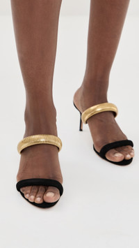 - Upper: Suede - Padded toe strap - Gold-tone ribbed midfoot strap - Lightly cushioned footbed - Lining: Leather - Kitten heel - Slip on - Open toe - Leather sole with rubber heel cap - Imported, Vietnam - This item cannot be gift-boxed Style #VBEAR33042 Size & Fit Heel: 2.75in / 70mm
