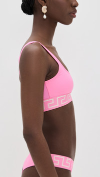 - Logo elastic strap - Pullover design, no closure - Shell: 78% polyamide/22% elastane - Lined - Hand wash - Made in Italy - Bottoms sold separately Style #VERSA31282