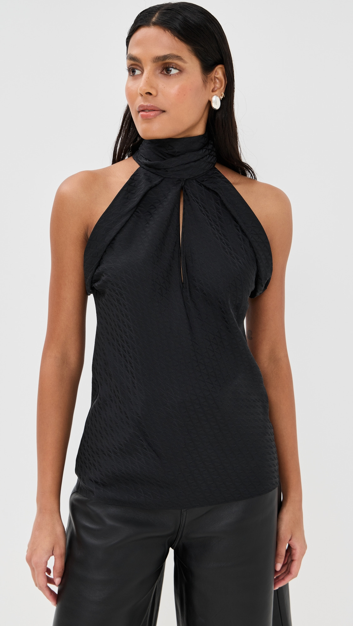 - Fabric: Lightweight, non-stretch jacquard - Mock neck - Sleeveless - Tie at neckline - Shell: 60% viscose/40% silk - Dry clean - Made in Italy Style #VERSA31345 Size & Fit Model measurements: Size 36: Samruddhi (5'8") usually wears size 36-38 Measurements from size 36 Length: 24.75in / 63.0cm, from shoulder