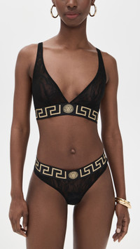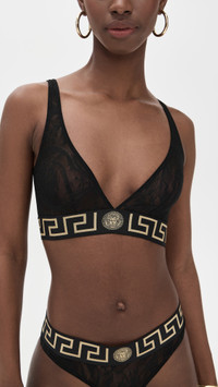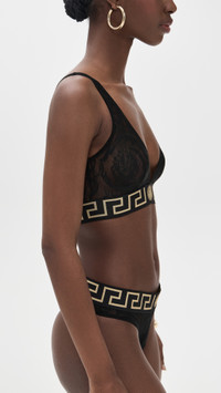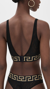 - Embroidered mesh - Logo elastic strap - Hook-and-eye closure at back - Underwire cups - Semi-sheer - Shell: 82% polyamide/18% elastane - Hand wash - Made in Italy - Bottoms sold separately Style #VERSA31271