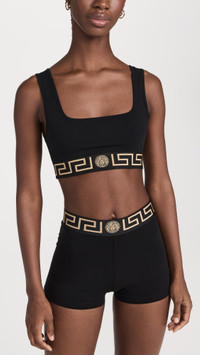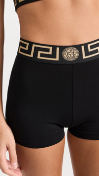 - Fabric: Activewear jersey - Logo waistband - Shell: 78% polyamide/22% elastane - Trim: 82% polyester/9% elastane/9% polyamide - Wash cold - Made in Italy Style #VERSA31082 Size & Fit Measurements from size 1 Rise: 12.25in / 31cm Inseam: 2in / 5cm