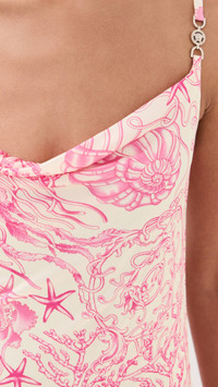 - Fabric: Lightweight stretch charmeuse - Logo embellishment at straps - Aquatic pattern - Mini length - Cowl neck - Sleeveless - Shell: 100% viscose - Lined - Lining: 100% viscose - Dry clean - Made in Italy Style #VERSA31293 Size & Fit Model measurements: Size 36: Rocio (5'11") usually wears size 36 Measurements from size 36 Length: 34.25in / 87.0cm, from shoulder