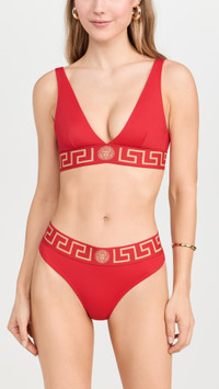 - Logo embroidery at elastic waistband - Moderate coverage - Shell: 78% polyamide/22% elastane - Lined - Hand wash - Made in Italy Style #VERSA31151 Size & Fit Customers say: Runs small; please size up. Model measurements: Size 1: Gabriela (5'9") usually wears size 1-2