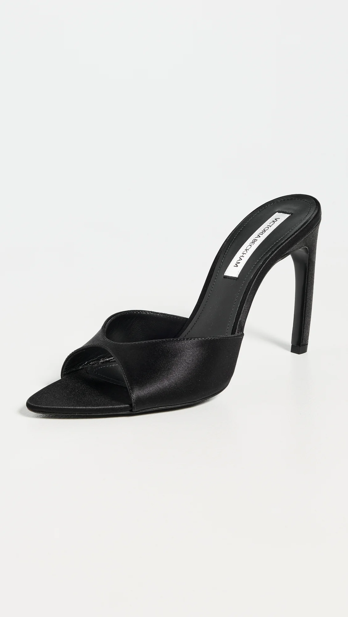 - Upper: Satin - Curved heel - Lining: Leather - Stiletto heel - Slip on - Open toe - Leather sole with rubber heel cap - Made in Italy - This item cannot be gift-boxed Style #VBEDB30607