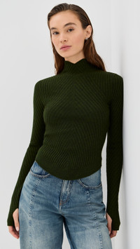 - Fabric: Mid-weight ribbed knit - Curved hem - Turtleneck - Long sleeves - Shell: 100% wool - Dry clean - Imported, China Style #VBEDB30572