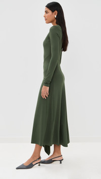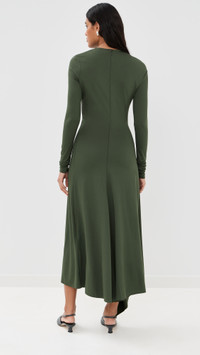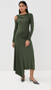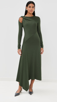 - Fabric: Lightweight, super-stretch fine jersey - Cutout and twisted detail at shoulder - Asymmetrical hem - Midi length - Boat neck - Long sleeves - Hook-and-eye and hidden zip at back - Shell: 90% polyester/10% elastane - Unlined - Dry clean - Made in Portugal Style #VBEDB30573 Size & Fit Model measurements: Size 4: Samruddhi (5'8") usually wears size 4-6 Measurements from size 2 Length: 51.25in / 130.0cm, from shoulder to front hem