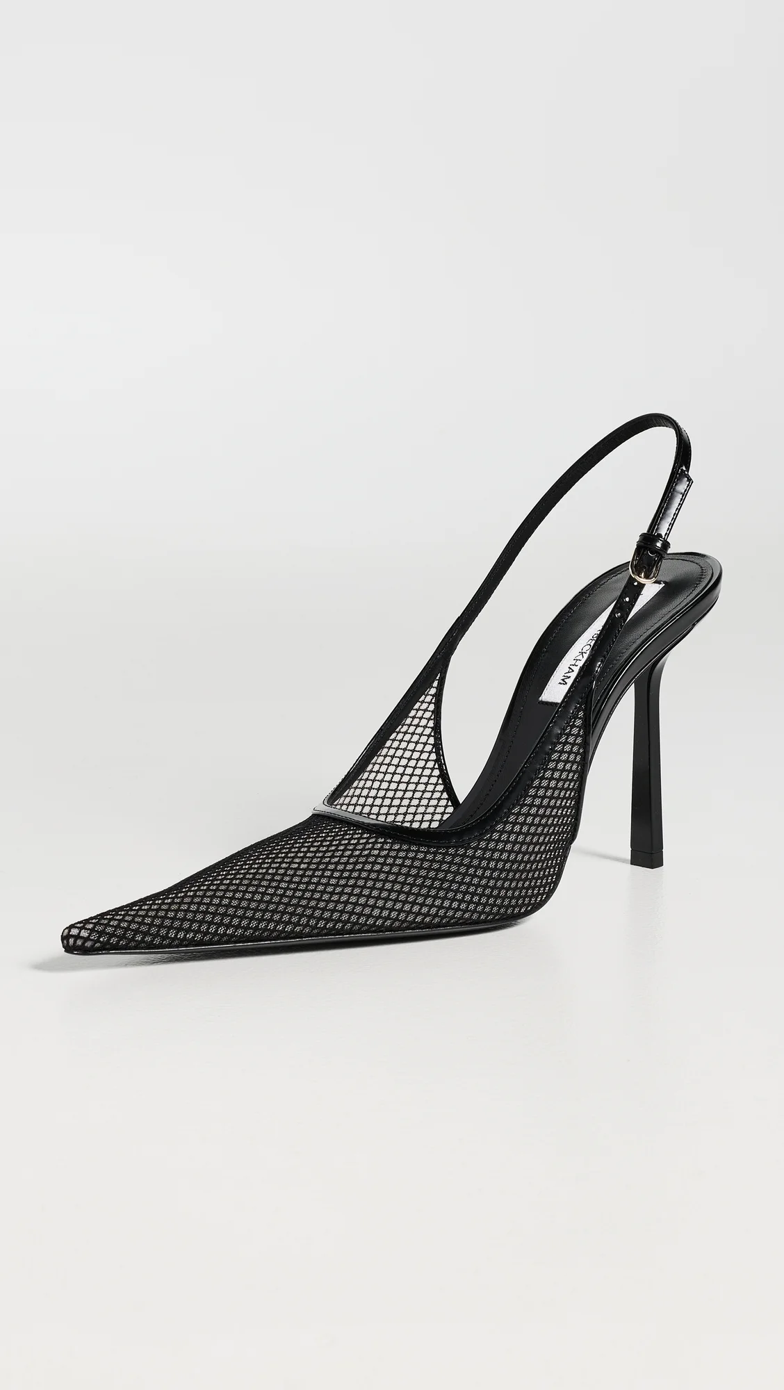 - Upper: Mesh - Leather trim - Lining: Leather - Stiletto heel - Buckle ankle strap - Pointed toe - Leather sole with rubber heel cap - Made in Italy - This item cannot be gift-boxed Style #VBEDB30605 Size & Fit This shoe is available in whole sizes only. If you wear a half size, please size up. Heel: 4in / 100mm