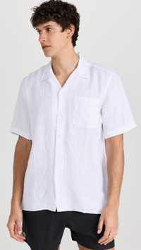 - Fabric: Lightweight, low-stretch linen weave - Camp collar and button placket - Patch breast pocket - Shell: 100% linen - Machine wash - Imported, Morocco - Short sleeves Style #VILEB30179 Size & Fit Model measurements: Size XL: Kyle (6'3") usually wears size XL Measurements from size M Length: 29.25in / 74cm Chest: 41.75in / 106cm
