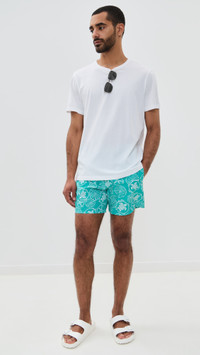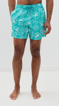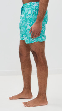 - Fabric: Lightweight, non-stretch weave - Logo patch at back - Turtle and urchin print - Covered elastic waist with drawstring - On-seam hip pockets and flap back pocket - Shell: 100% recycled polyamide - Mesh lining - Wash cold - Imported, Tunisia Style #VILEB30202 Size & Fit Model measurements: Size M: Zach (6'0") usually wears size M Measurements from size M Rise: 12.25in / 31cm Inseam: 5.5in / 14cm Outseam: 15.25in / 39cm
