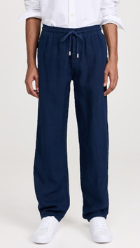 - Fabric: Lightweight, non-stretch linen weave - Covered elastic waist with drawstring - Button fly - Slant hip pockets and flap back pockets - Shell: 100% linen - Wash cold - Imported, Morocco Style #VILEB30193 Size & Fit Model measurements: Size M: Adarsh (6'1.5") usually wears size M Measurements from size M Rise: 11.5in / 29cm Inseam: 31.5in / 80cm Leg opening: 16.5in / 42cm