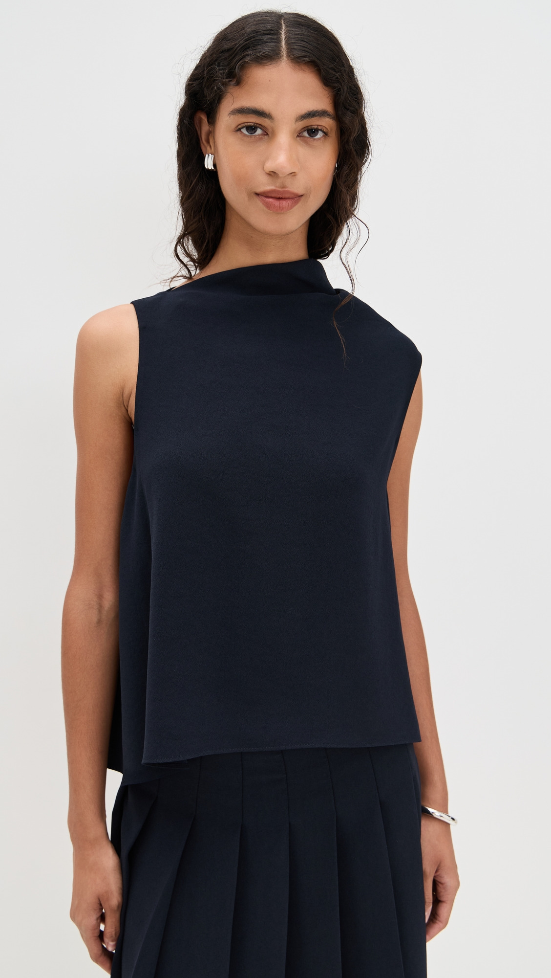 - Fabric: Lightweight, low-stretch crepe back satin - Asymmetrical hem - Cowl neck - Sleeveless - Shell: 100% polyester - Hand wash - Imported, China Style #VINCE52957