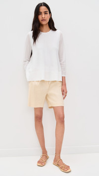 - Fabric: Lightweight loose knit with stretch - Center front and back seams - Crew neck - Long sleeves - Semi-sheer - Shell: 79% cotton/21% nylon - Partially lined - Lining: 100% cotton - Hand wash - Imported, China Style #VINCE52933 Size & Fit Model measurements: Size S: Priyanka (5'9") usually wears size XS Measurements from size S Length: 23.25in / 59.0cm, from shoulder