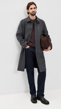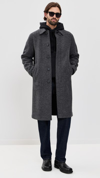 - Fabric: Heavyweight, low-stretch twill - Herringbone pattern - Collared neckline - Long sleeves with button cuffs - Covered button placket - Welt interior and front pockets - Shell: 60% recycled wool/19% recycled nylon/9% acrylic/9% polyester/2% silk/1% rayon - Lined - Lining: 50% cotton/50% modal - Dry clean - Imported, Vietnam Style #VINCE52991 Size & Fit Model measurements: Size M: Gordon (6'1") usually wears size M Measurements from size L Length: 43.25in / 110cm Sleeve: 33.5in / 85cm Chest: 45in / 114cm