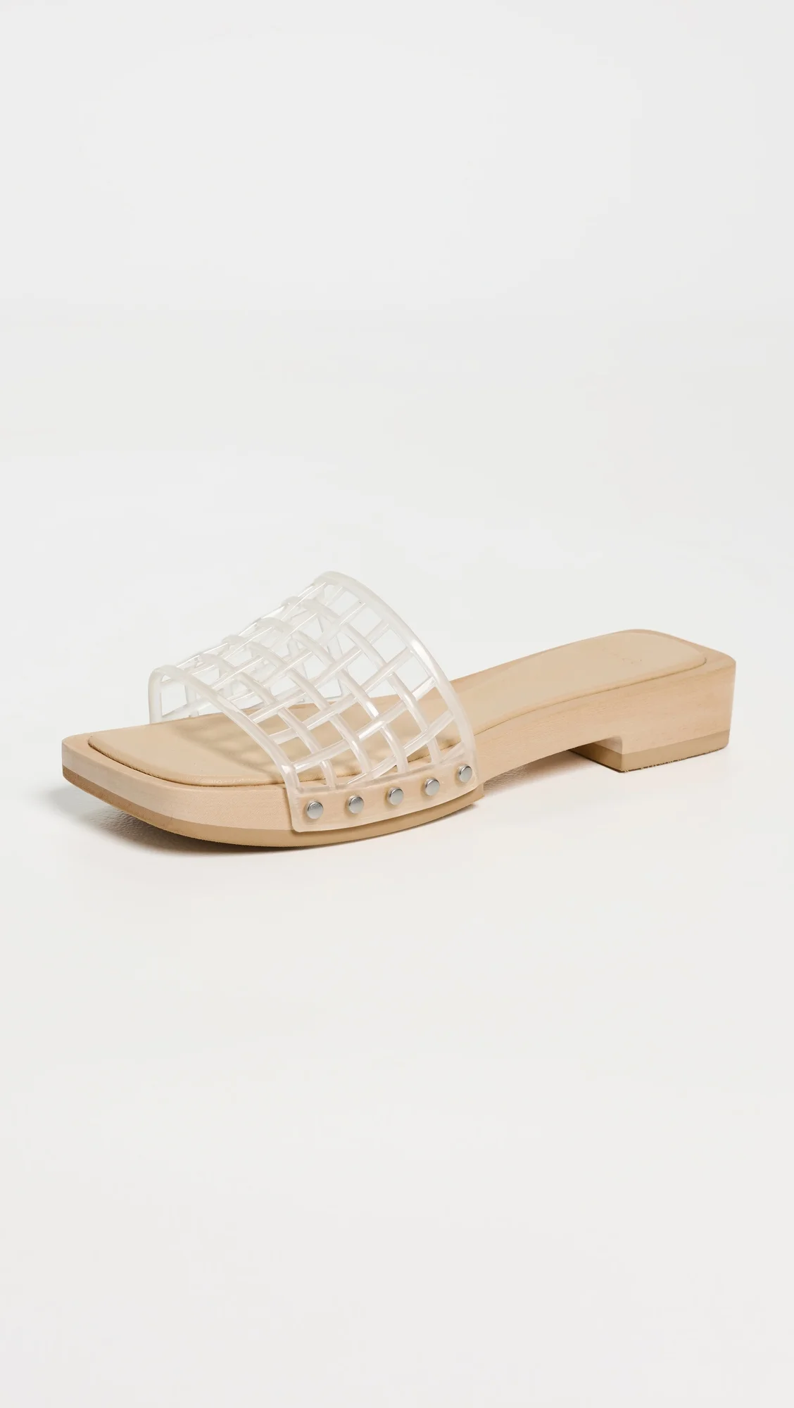 - Upper: PVC - Cushioned footbed - Silver-tone stud accents - Lining: Unlined - Block heel - Slip on - Open toe - Rubber sole - Imported, Cambodia - This item cannot be gift-boxed Style #VINCE53203 Size & Fit Heel: 1.25in / 32.5mm