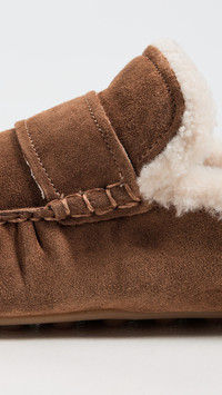 - Dyed shearling (lamb) from South Africa - Upper: Suede - Vamp strap - Lining: Shearling - Slip on - Round toe - Rubber sole - Imported, India - This item cannot be gift-boxed Style #VINCE53352