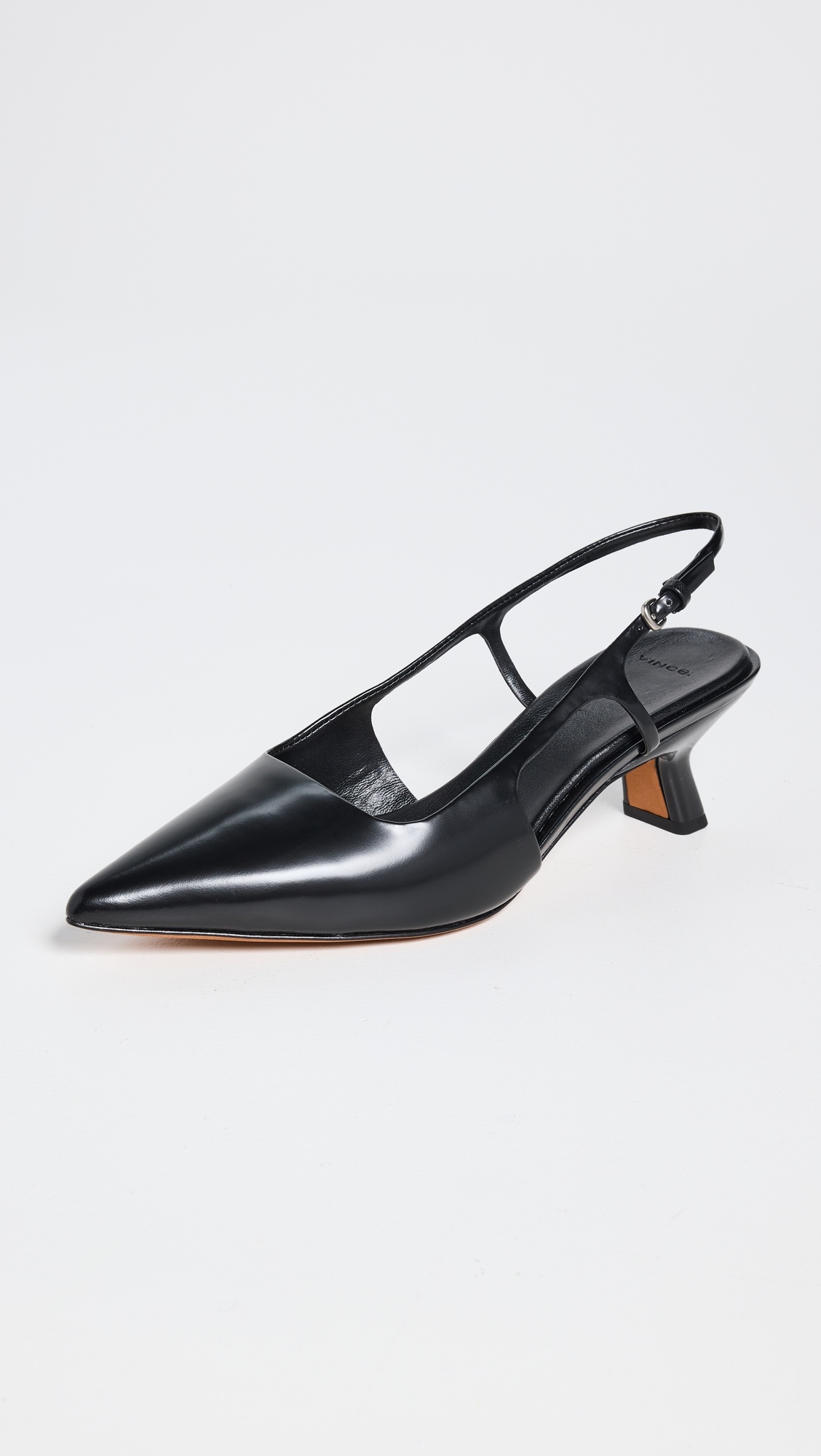 - Upper: Calfskin - Silver-tone hardware - Cushioned leather footbed - Covered heel - Buckle ankle strap - Pointed toe - Leather sole with rubber heel cap - Imported, Vietnam - This item cannot be gift-boxed Style #VINCE52761 Size & Fit Heel: 2in / 50mm