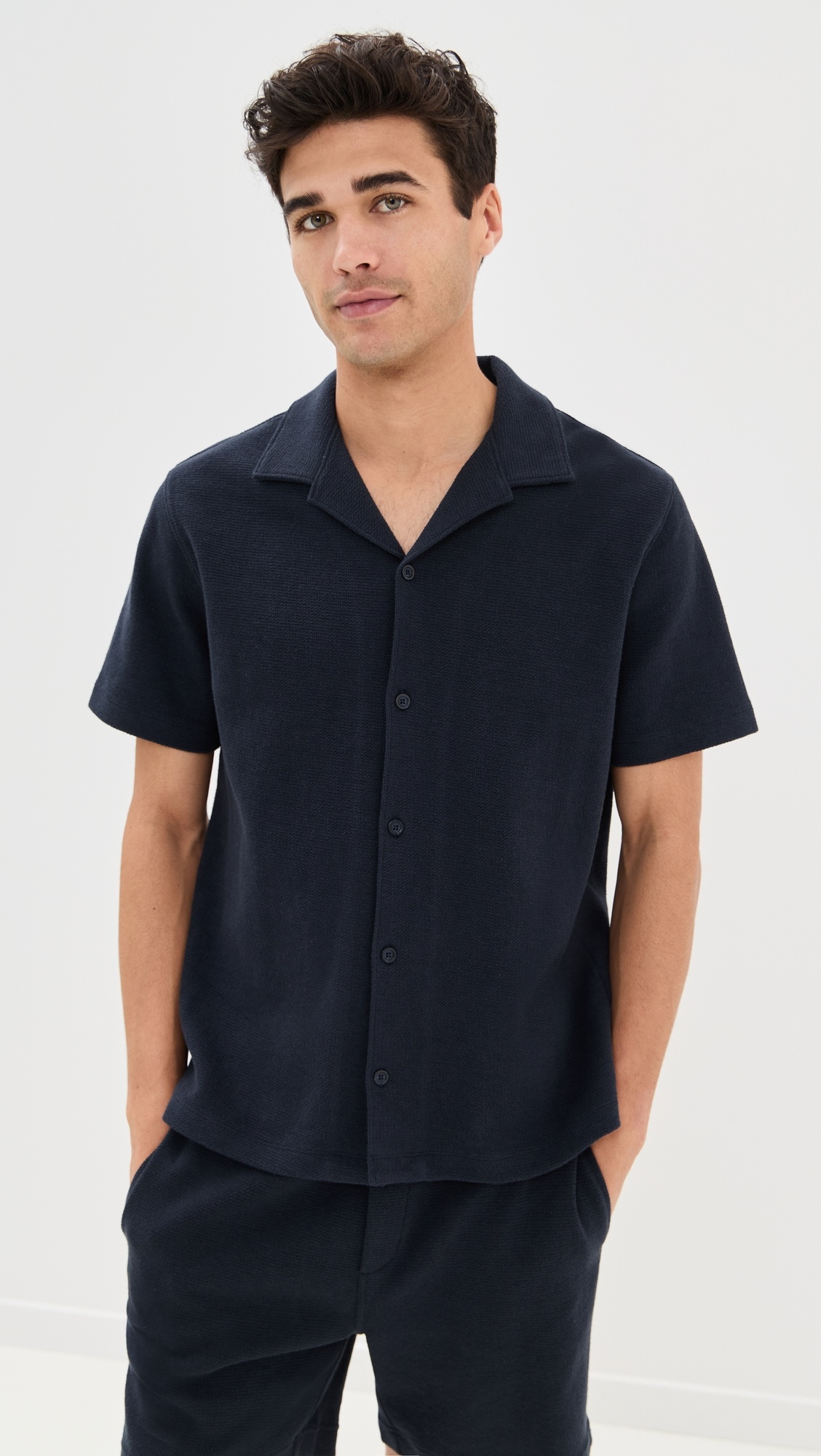 - Fabric: Lightweight textured knit - Camp collar - Short sleeves - Button placket - Shell: 96% cotton/4% polyester - Wash cold - Imported, China Style #VINCE52786