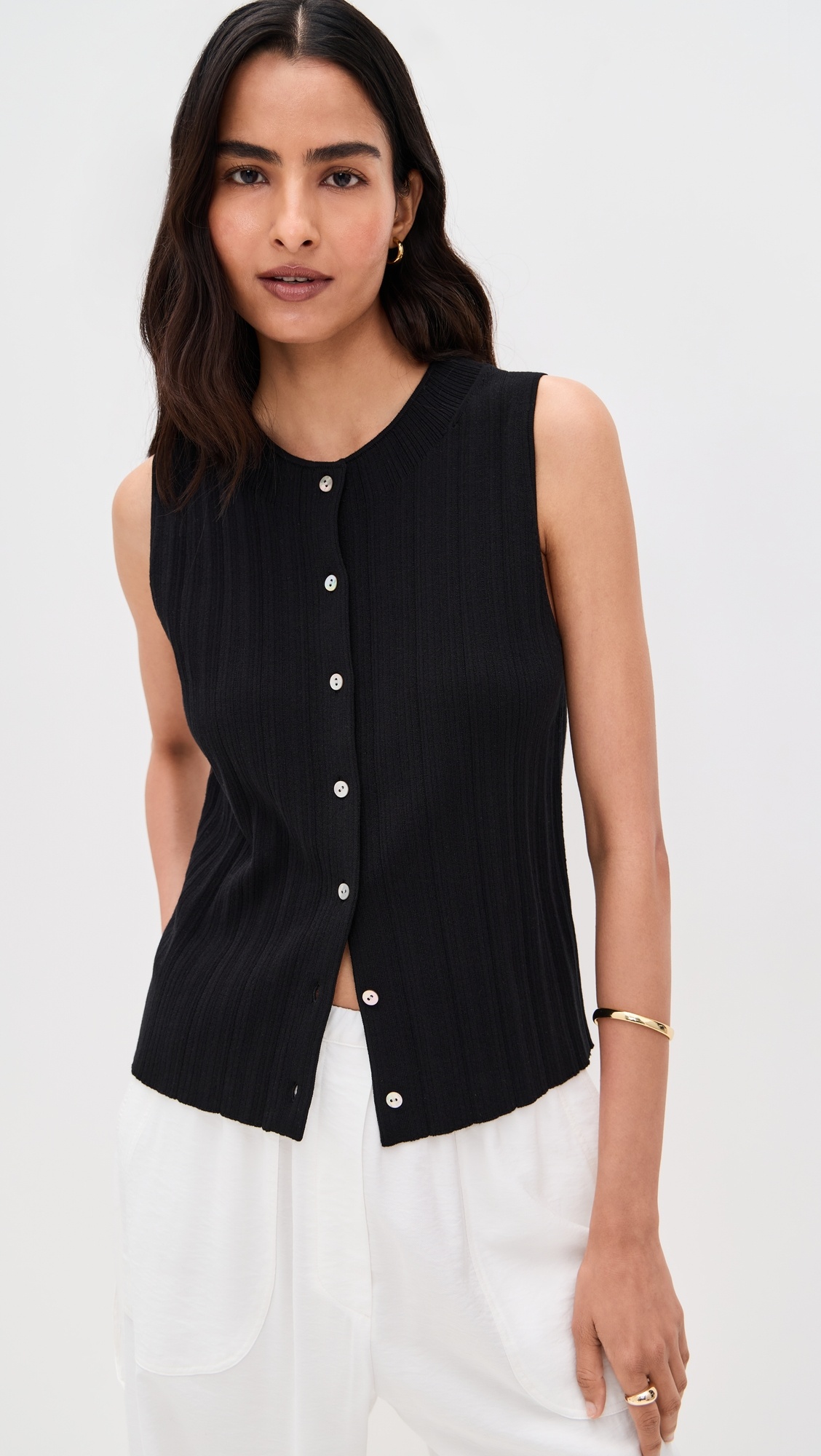 - Fabric: Lightweight ribbed knit with stretch - Crew neck - Sleeveless - Button placket - Shell: 71% cotton/25% nylon/4% spandex - Hand wash - Imported, China Style #VINCE52936