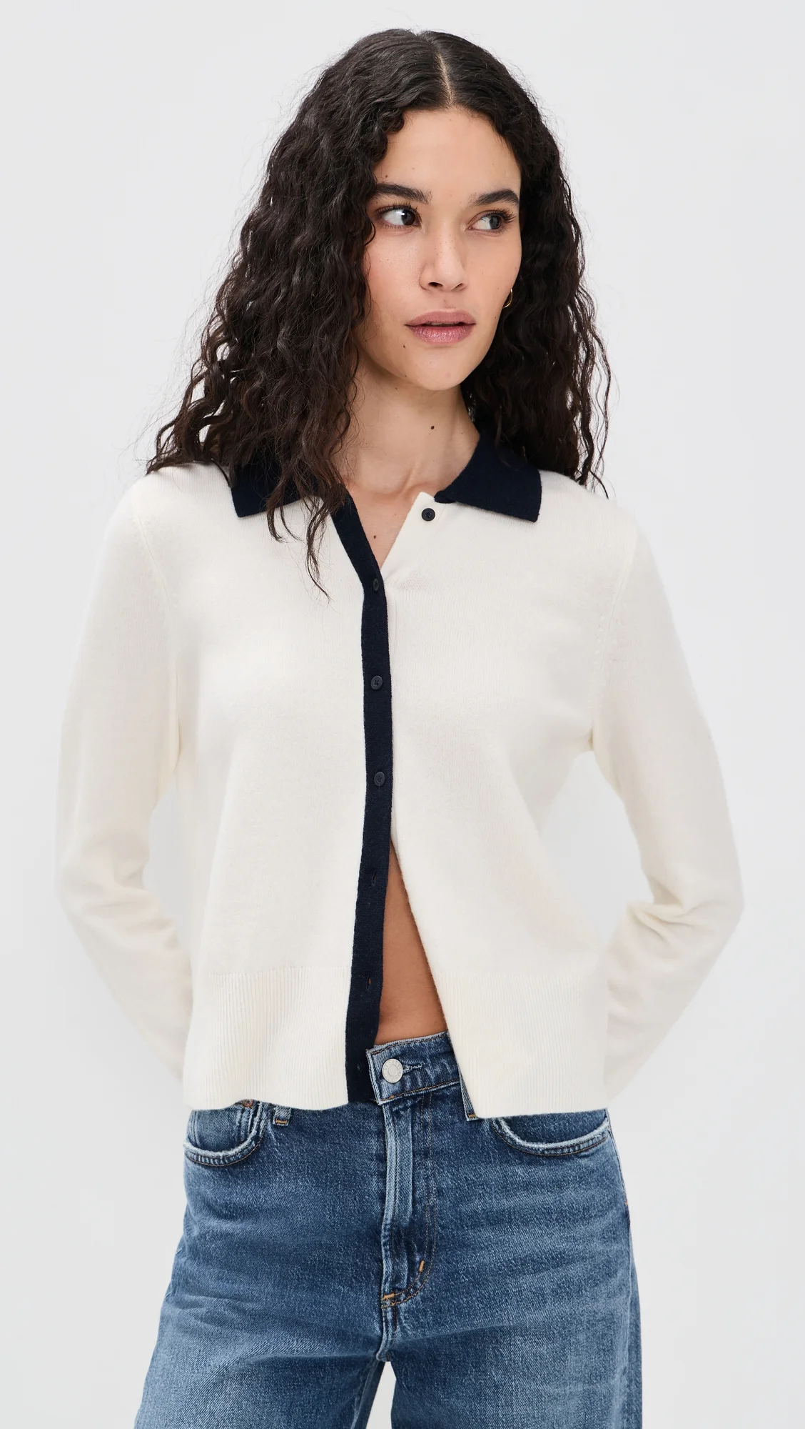 - Fabric: Mid-weight stretch knit - Contrast edges - Collared neck - Long sleeves - Button placket - Shell: 66% wool/28% cashmere/4% nylon/2% spandex - Hand wash or dry clean - Imported, Cambodia Style #VINCE53188 Size & Fit Model measurements: Size S: Mayra (5'10") usually wears size XS Measurements from size S Length: 20.75in / 53.0cm, from shoulder