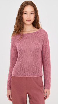 - Fabric: Lightweight stretch knit - Coated yarn made in Italy - Boat neck - Shell: 80% cotton/20% polyamide - Hand wash - Imported, China - Long sleeves with dropped shoulders Style #VINCE52895 Size & Fit Model measurements: Size S: Maia (5'10") usually wears size XS Measurements from size S Length: 19.75in / 50.0cm, from shoulder