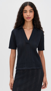 - Fabric: Lightweight, super-stretch pointelle knit - Collared neck - Elbow-length sleeves - Semi-sheer - Shell: 100% cotton - Dry clean - Imported, China Style #VINCE52953 Size & Fit Model measurements: Size XS: Rocio (5'11") usually wears size XS Measurements from size XS Length: 22in / 56.0cm, from shoulder