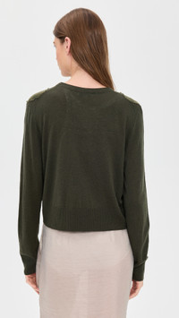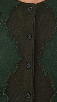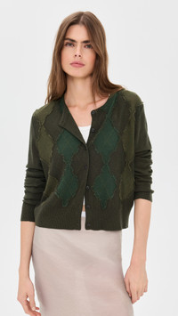 - Fabric: Lightweight, super-stretch fine knit - Argyle pattern - Ribbed trim - Crew neck - Long sleeves - Button placket - Shell: 74% wool/21% polyester/5% cashmere - Dry clean - Imported, China Style #VINCE53039 Size & Fit Model measurements: Size M: Gwen (5'10") usually wears size XS Measurements from size M Length: 18.5in / 47.0cm, from shoulder