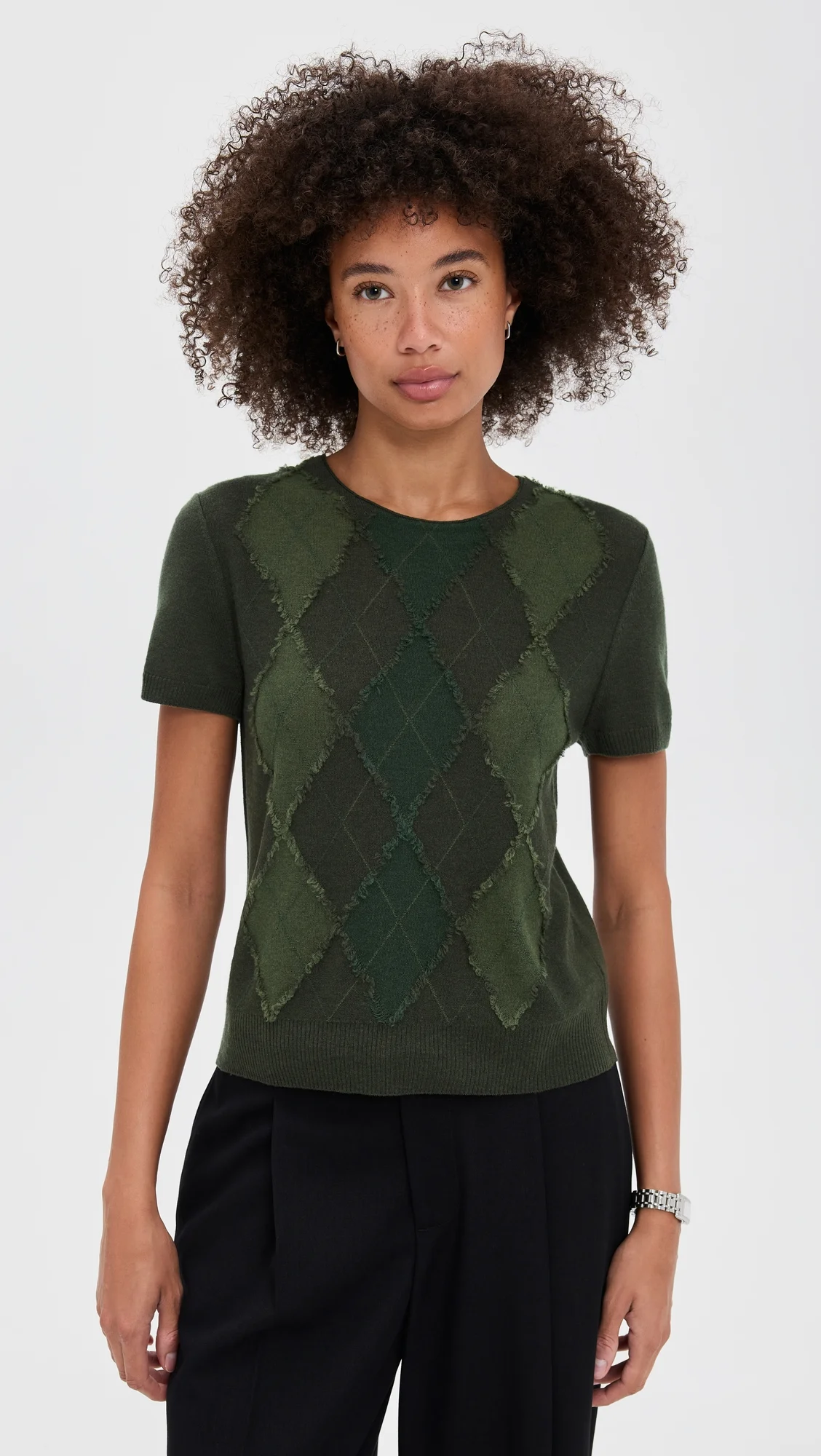 - Fabric: Lightweight knit - Argyle pattern - Crew neck - Short sleeves - Shell: 74% wool/21% polyester/5% cashmere - Hand wash or dry clean - Imported, China Style #VINCE53037 Size & Fit Model measurements: Size S: Drew (5'8") usually wears size XS-S Measurements from size S Length: 20in / 51.0cm, from shoulder