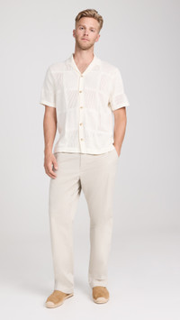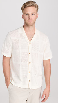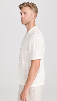- Fabric: Lightweight pointelle knit - Collared neckline - Button placket - Shell: 100% cotton - Hand wash - Imported, China - Short sleeves Style #VINCE52451