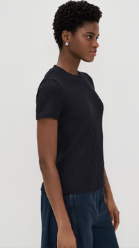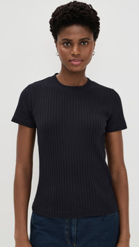 - Fabric: Lightweight ribbed knit - Crew neck - Short sleeves - Shell: 78% cotton/19% polyester/3% spandex - Hand wash or dry clean - Imported, China Style #VINCE52848