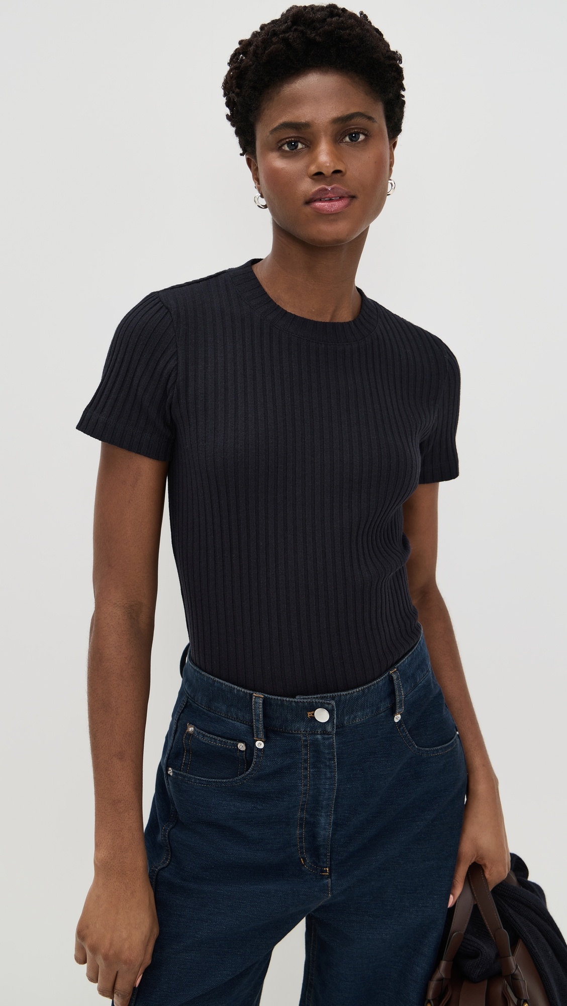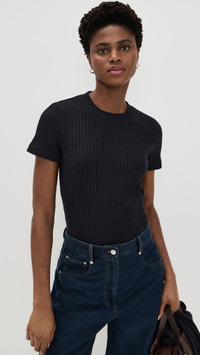 Ribbed Short-Sleeve Crewneck Top